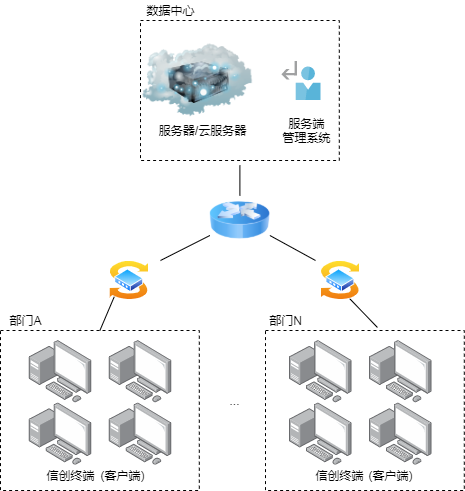 信创云终端运维管理解决方案中服务端支持直接部署在物理服务器上,也可部署在云服务器中,为单位提供弹性、易用的管理模式,极大简化单位IT系统管理,提升资源使用率,保障业务的连续性。