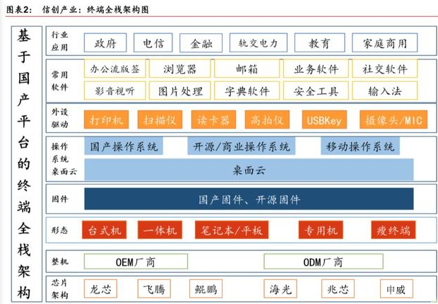 信息技术应用创新发展是目前国内的一项战略,也是当今形势下国内经济发展的新动能。早前,华泰证券研报指出,2020 年是信创产业全面推广的起点,未来三到五年,信创产业将迎来黄金发展期。信创产业未来将是关键领域的全面安全,实现软硬件的全部替换,并逐步实现政务云的国产化。以目前的信创产业为契机,全面实现以操作系统、芯片、数据库、应用软件等为核心的国产自主安全平台,随着云计算、物联网、AI、大数据等应用,持续促进底层能力的提升,上层业务不断拓展,产业边际不断拓宽。